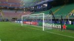 Coppia porte calcio 732×244 cm., in alluminio, reggirete a palo distanziato, a norma UNI EN 748