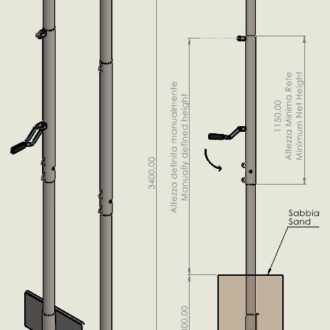 Impianto beach volley in acciaio zinc.a periscopio doppia rotella in teflon per scorrimento cavo rete, a norma F.I.P.A.V.